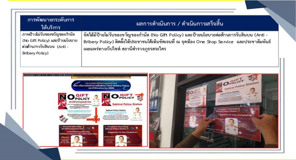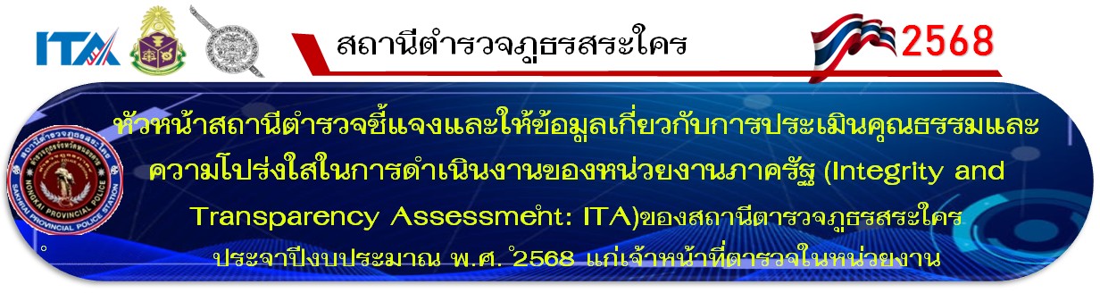 วันที่ 8  เมษายน 2568 เวลา 09.00 น. พ.ต.อ.สรพงษ์ งิมสันเทียะ ผกก.สภ.สระใคร พร้อมด้วยข้าราชการตำรวจ สภ.สระใครได้ประชุมชี้แจงการดำเนินงานการประเมินคุณธรรมและความโปร่งใส ในการดำเนินงานของหน่วยงานภาครัฐ (Integrity and Transparency Assessment: ITA) ของสถานีตำรวจ ประจำปีงบประมาณ พ.ศ.2568 ให้กับหัวหน้างานทุกสายงานและข้าราชการตำรวจในสังกัดทุกสายงานรับทราบ และร่วมปฏิบัติตามมาตการ/กิจกรรมมาตรการยกระดับคุณธรรมและความโปร่งใสภายในหน่วยงาน ประจำปีงบประมาณ พ.ศ.2568  ตามโดยได้มีคำสั่ง สถานีตำรวจภูธรสระใคร ที่ 127 / 2568    เรื่อง     แต่งตั้งคณะทำงานและมอบหมายผู้รับผิดชอบการทำข้อมูลเพื่อประกอบการประเมินคุณธรรมและความโปร่งใสในการดำเนินงานของหน่วยงานภาครัฐ (ITA) ประจำปีงบประมาณ พ.ศ. 2568 ลงวันที่ 3 เมษายน 2568   พร้อมทั้งได้มอบหมายผู้รับผิดชอบ  การพัฒนายกระดับการให้บริการ/ One Stop Service              เพื่ออำนวยความสะดวกให้กับประชาชนที่มารับบริการ โดยสถานีตำรวจดำเนินการปรับปรุงพัฒนาคุณภาพการให้บริการของสถานีตำรวจ 3 ด้าน (๑) การพัฒนายกระดับการให้บริการ/ One Stop Service              เพื่ออำนวยความสะดวกให้กับผู้มารับบริการ (2) การสื่อสาร บทบาทภารกิจและผลการปฏิบัติงานของสถานีตำรวจให้กับผู้มารับบริการได้รับทราบ (3) การเผยแพร่ข้อมูลสาธารณะ (OIT) ตามแบบตรวจการเปิดเผยข้อมูลสาธารณะ และให้ดำเนินการศึกษาและวิเคราะห์กรอบการประเมินประเด็นที่ต้องดำเนินการและประเด็นที่ต้องปรับปรุงและพัฒนา เพื่อเป็นการเตรียมความพร้อมในการรับการตรวจสอบการประเมินคุณธรรมและความโปร่งใสในการดำเนินงานภาครัฐ (Integrity and Transparency Assessment: ITA) ของสถานีตำรวจ ประจำปีงบประมาณ พ.ศ.2568 ณ หอประชุม สถานีตำรวจภูธรสระใคร