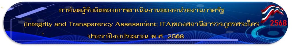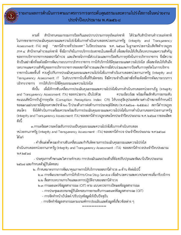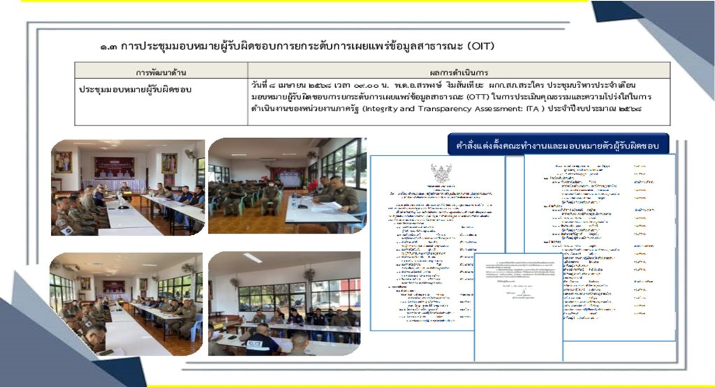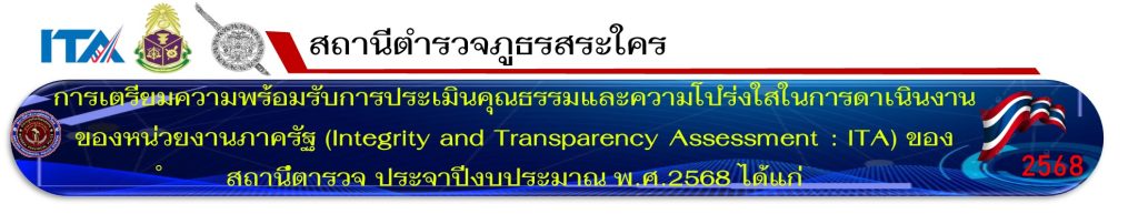 1.คำสั่งแต่งตั้งคณะทำงานขับเคลื่อนและกำกับติดตามการประเมินคุณธรรมและความโปร่งใสในการดำเนินงานของหน่วยงานภาครัฐ (Integrity and Transparency Assessment : ITA) ของสถานีตำรวจ