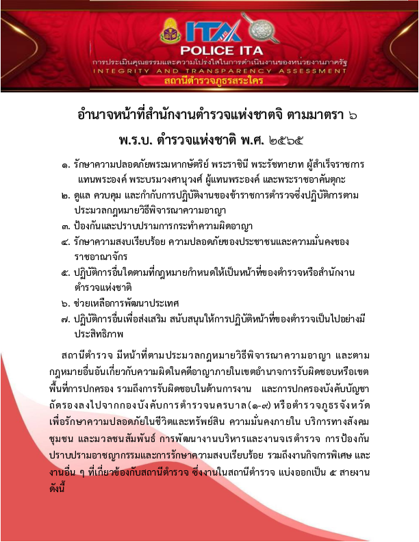 การกำหนดอำนาจหน้าที่ของตำแหน่งในสถานีตำรวจ สภ.สระใคร 68