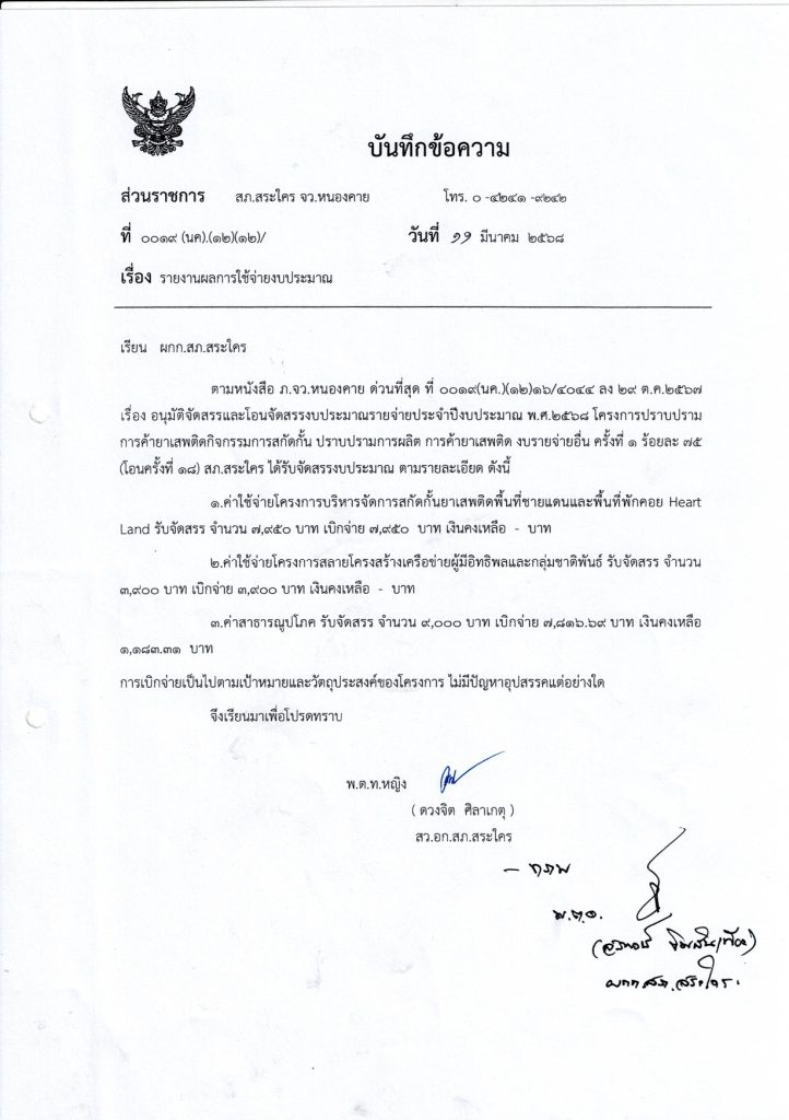 เบิกจ่ายเงินโครงการปราบปรามยาเสพติด