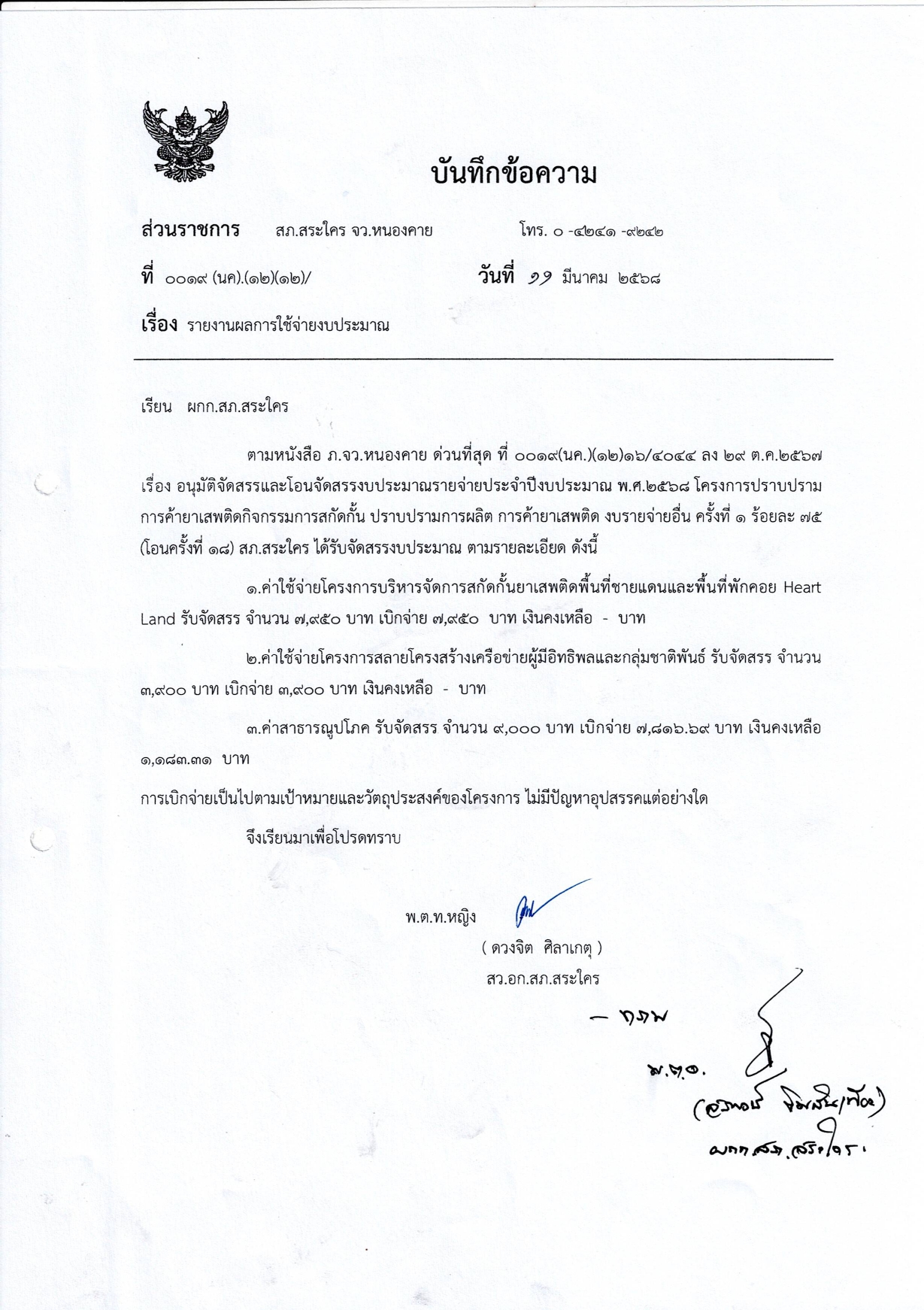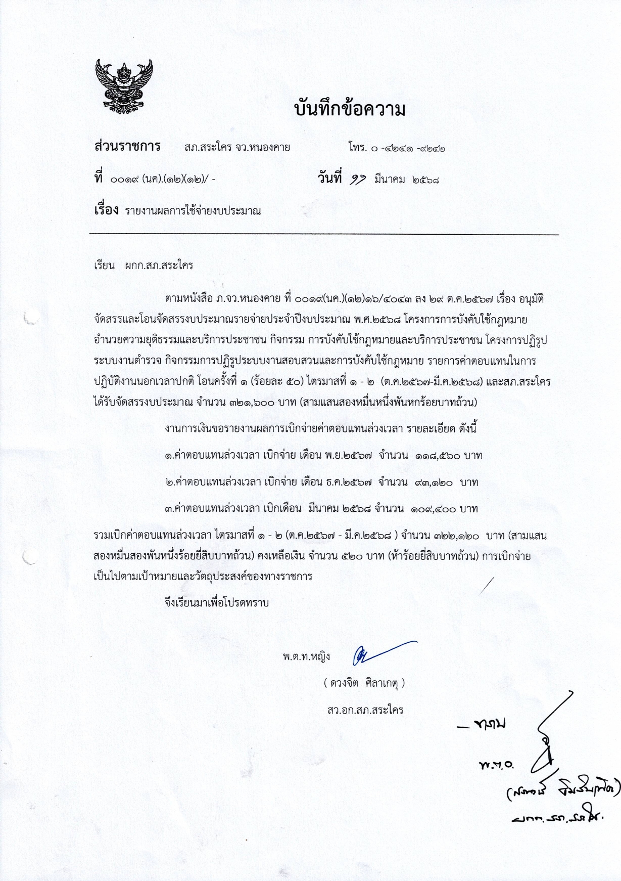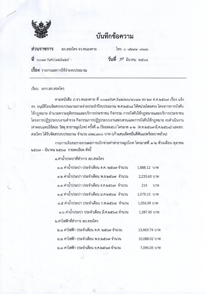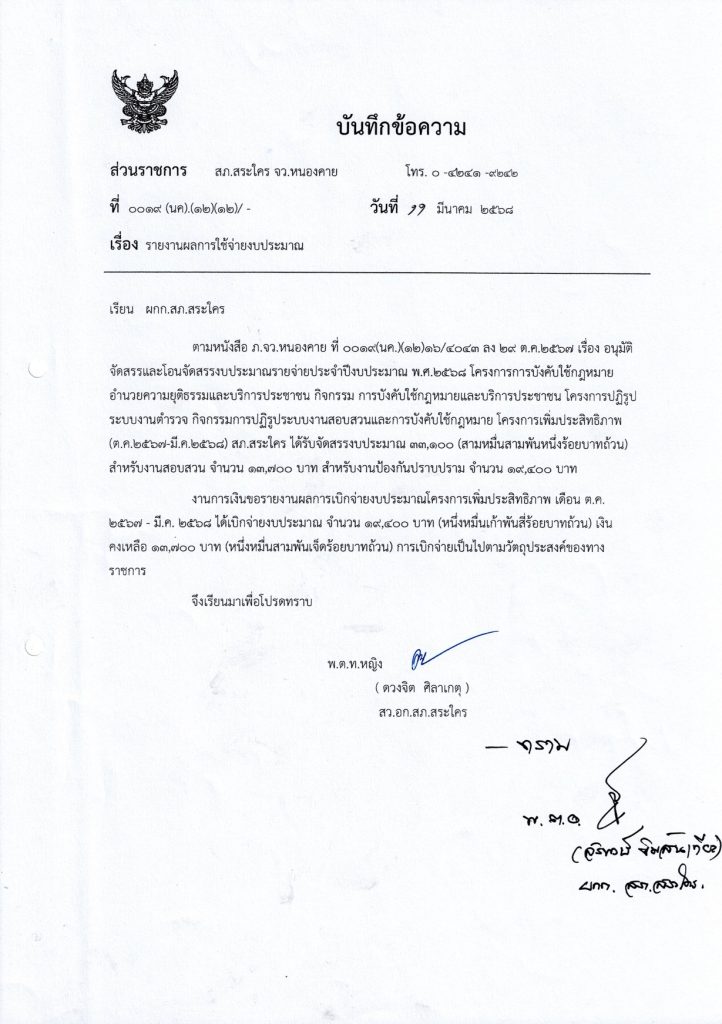 รายงานผลการใช้จ่ายงบประมาณ