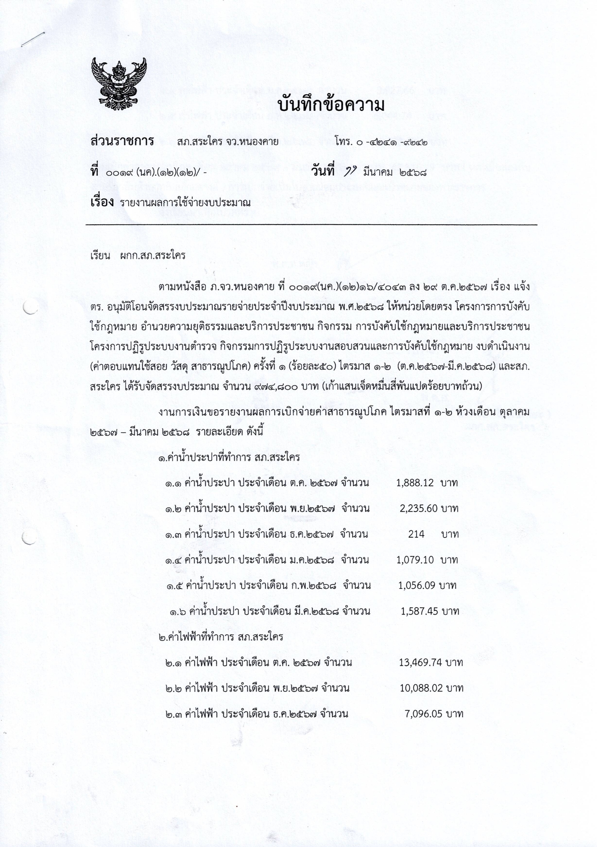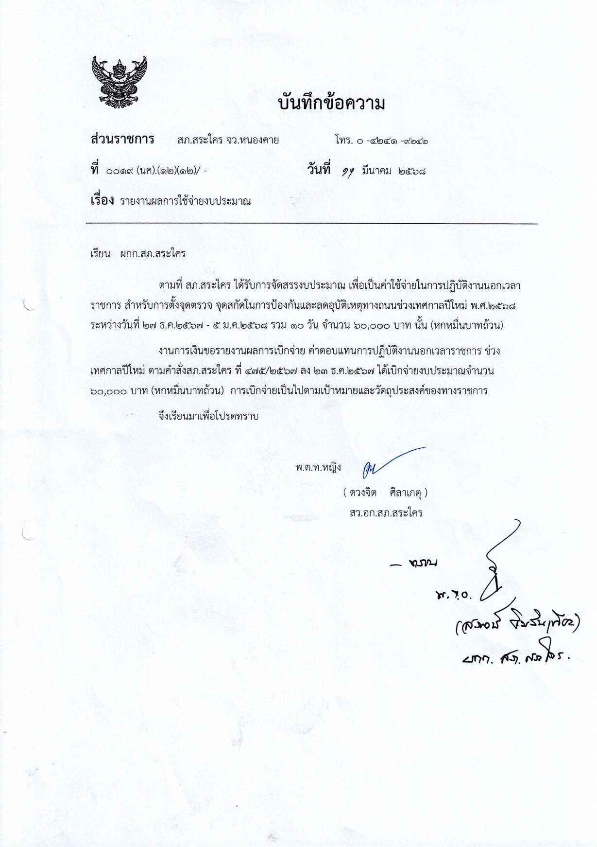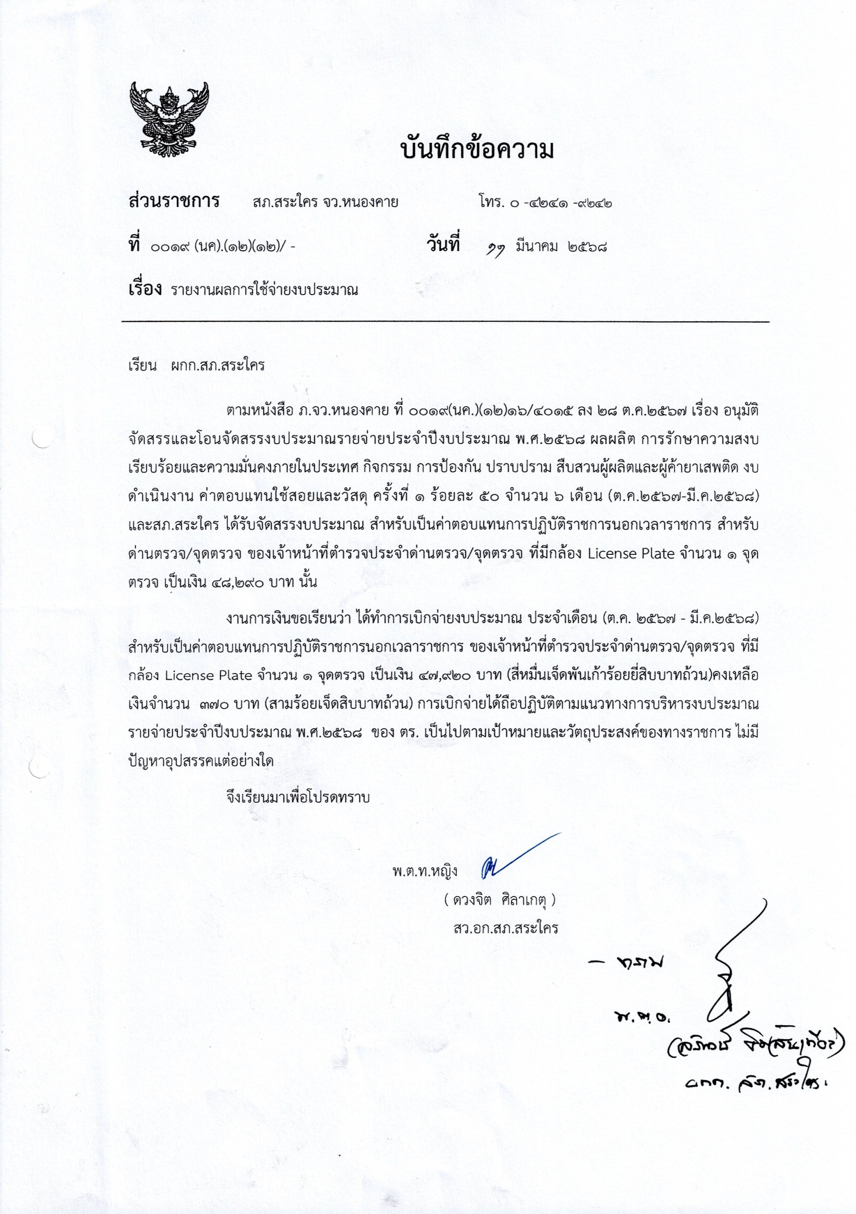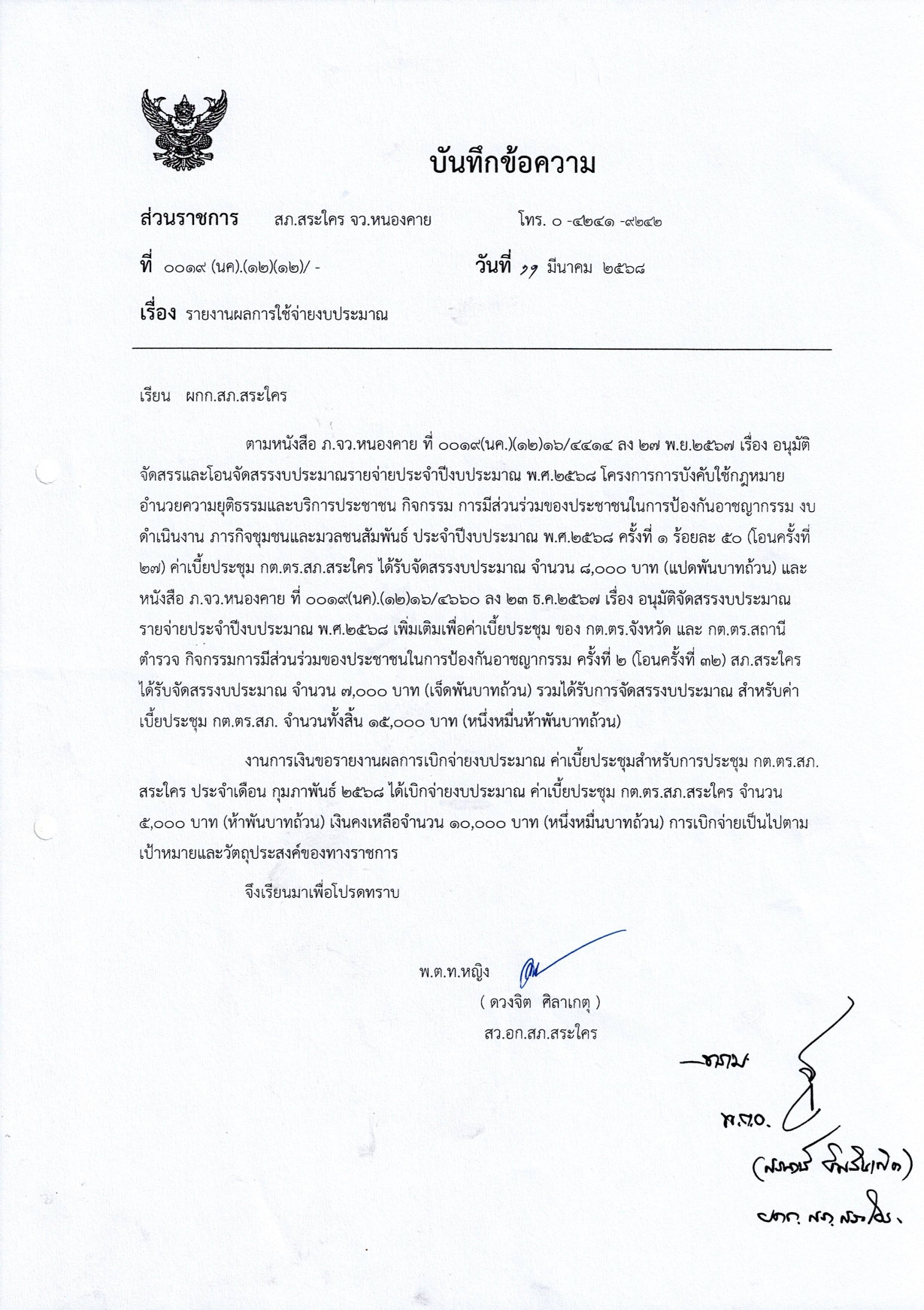 รายงานผลการใช้จ่ายงบประมาณ