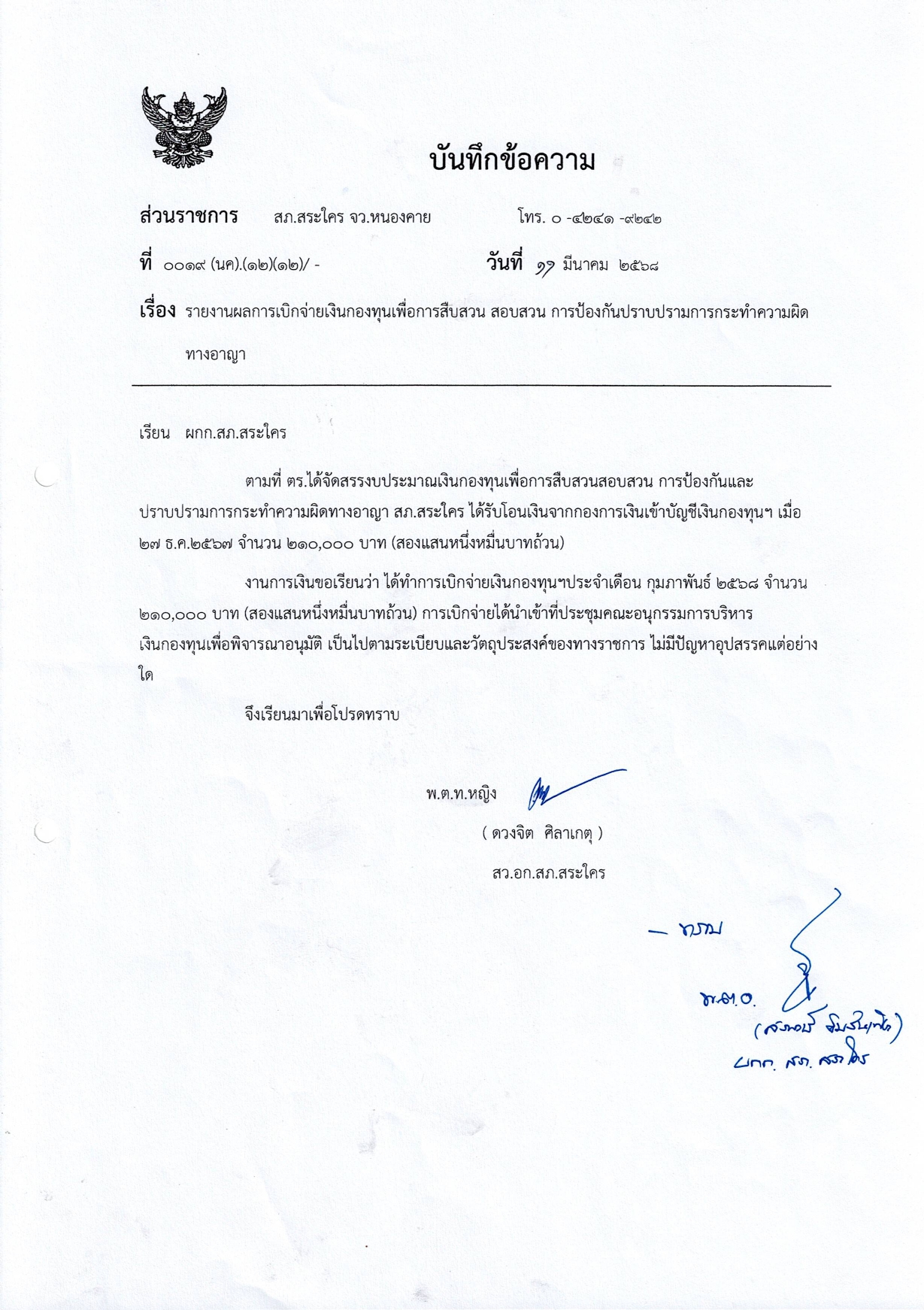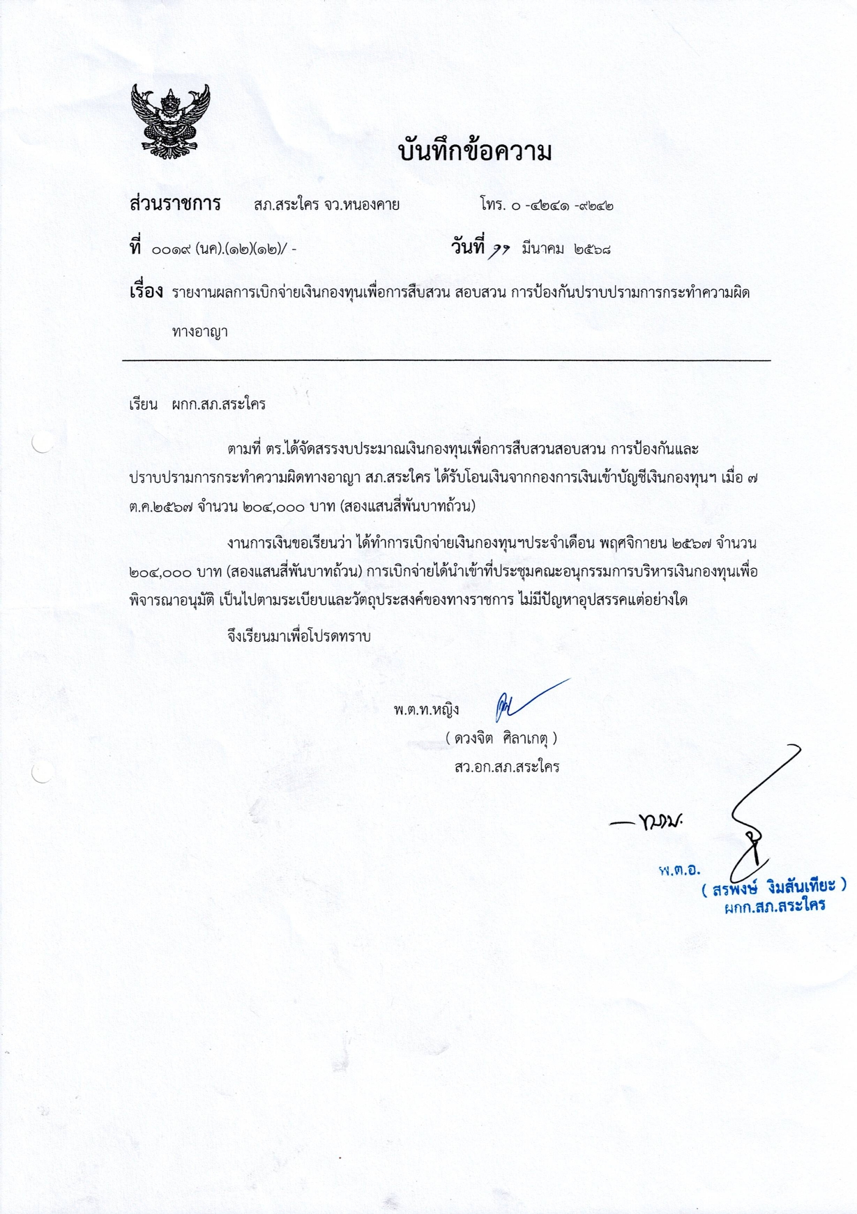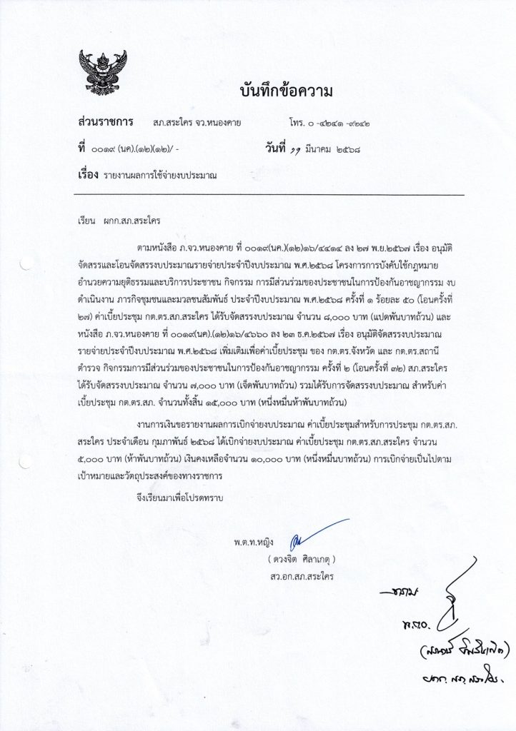 ลรายงานการเบิกจ่ายเงินกองทุนสืบสวนและสอบสวนการป้องกันและปราบปรามการกระทำผิด