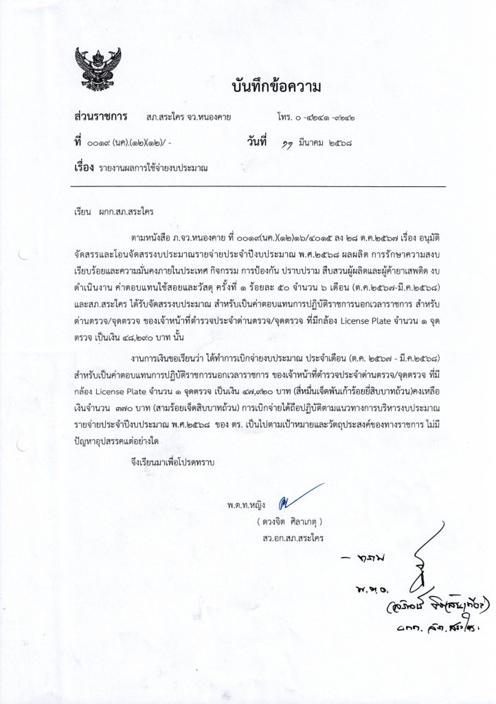 เบิกจ่ายเงินกล้อง License Plate