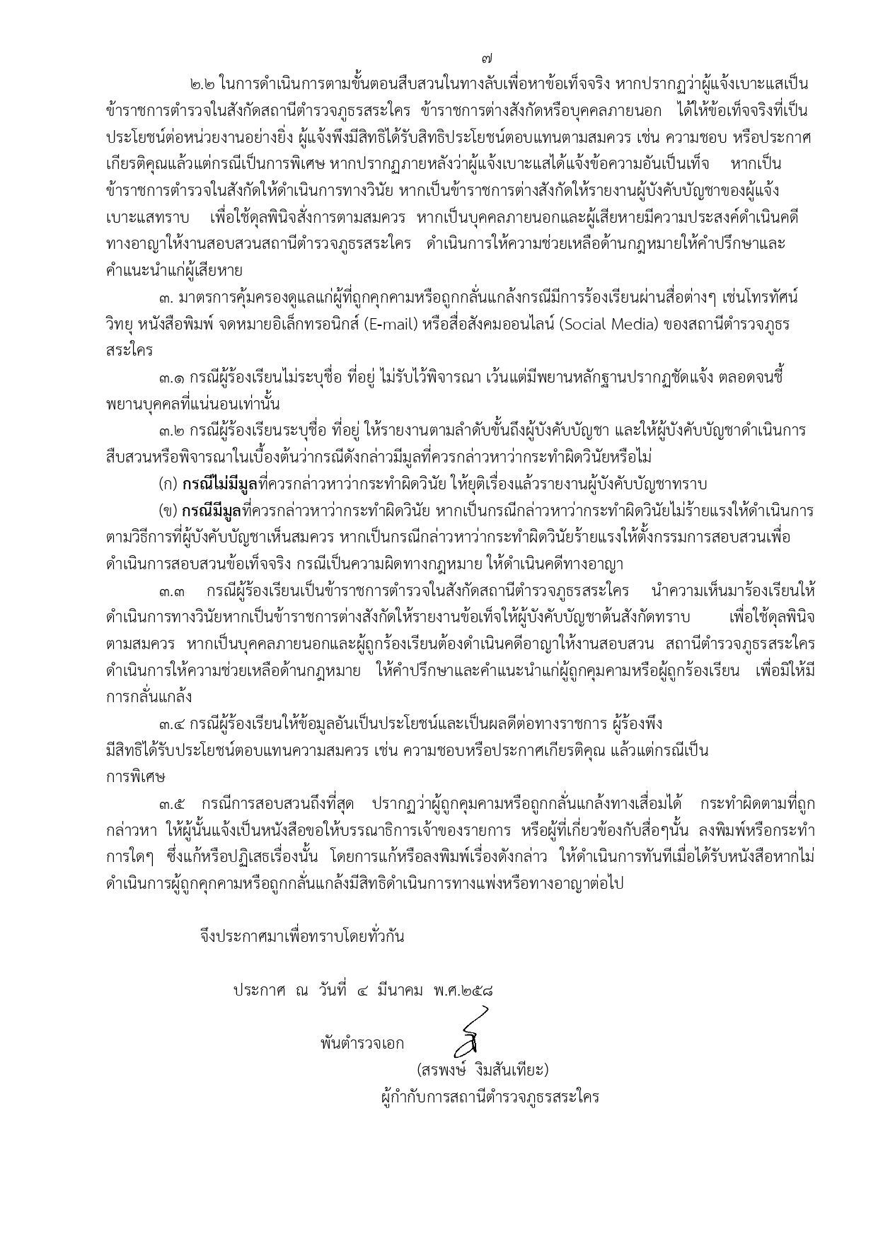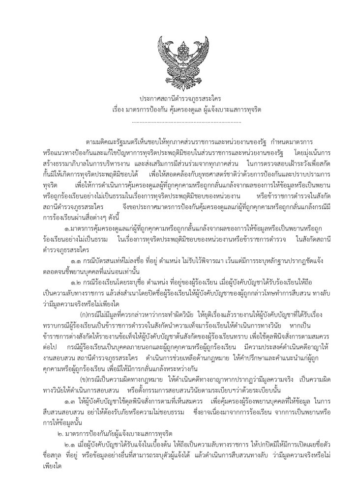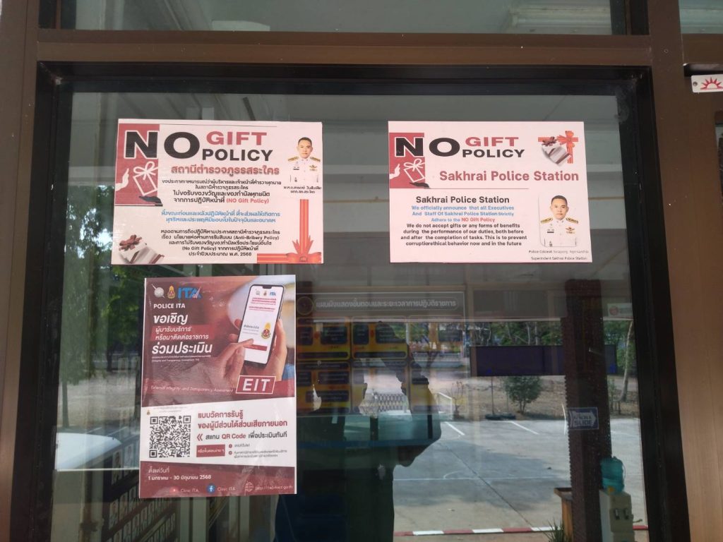 ประกาศ นโยบายการต่อต้านการับสินบน สภ.สระใคร งป.68 ฉบับภาษาไทย