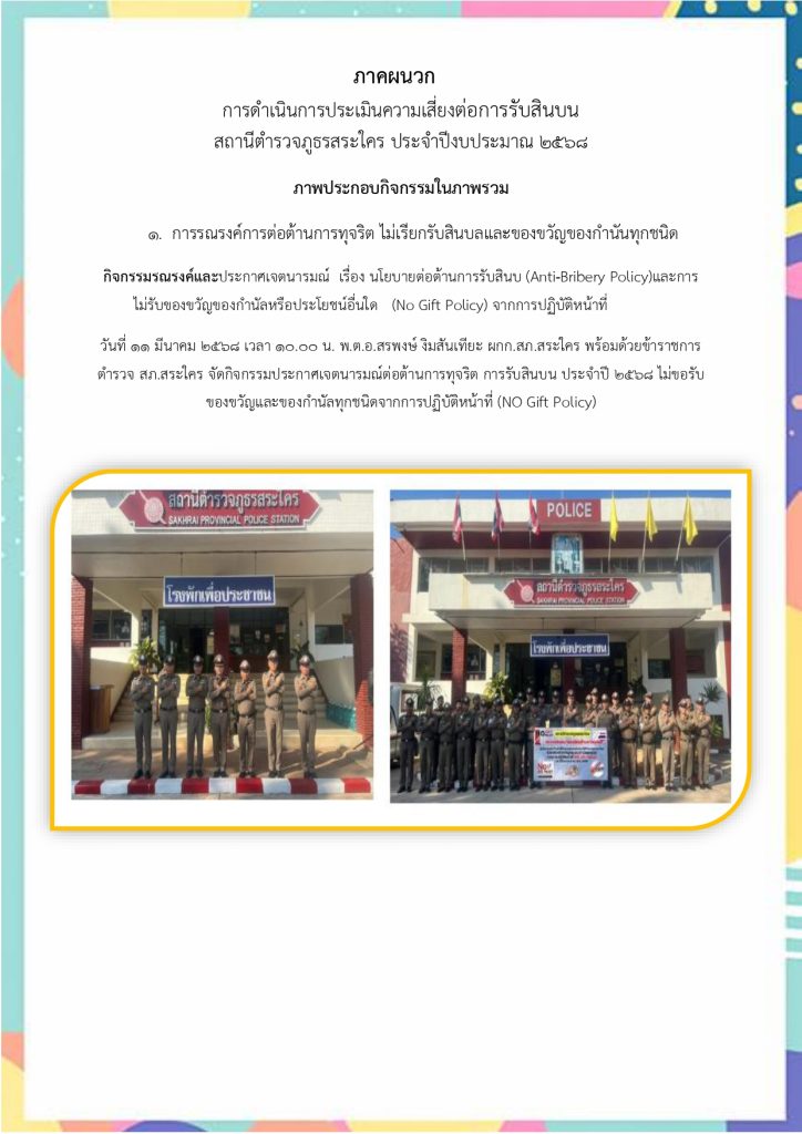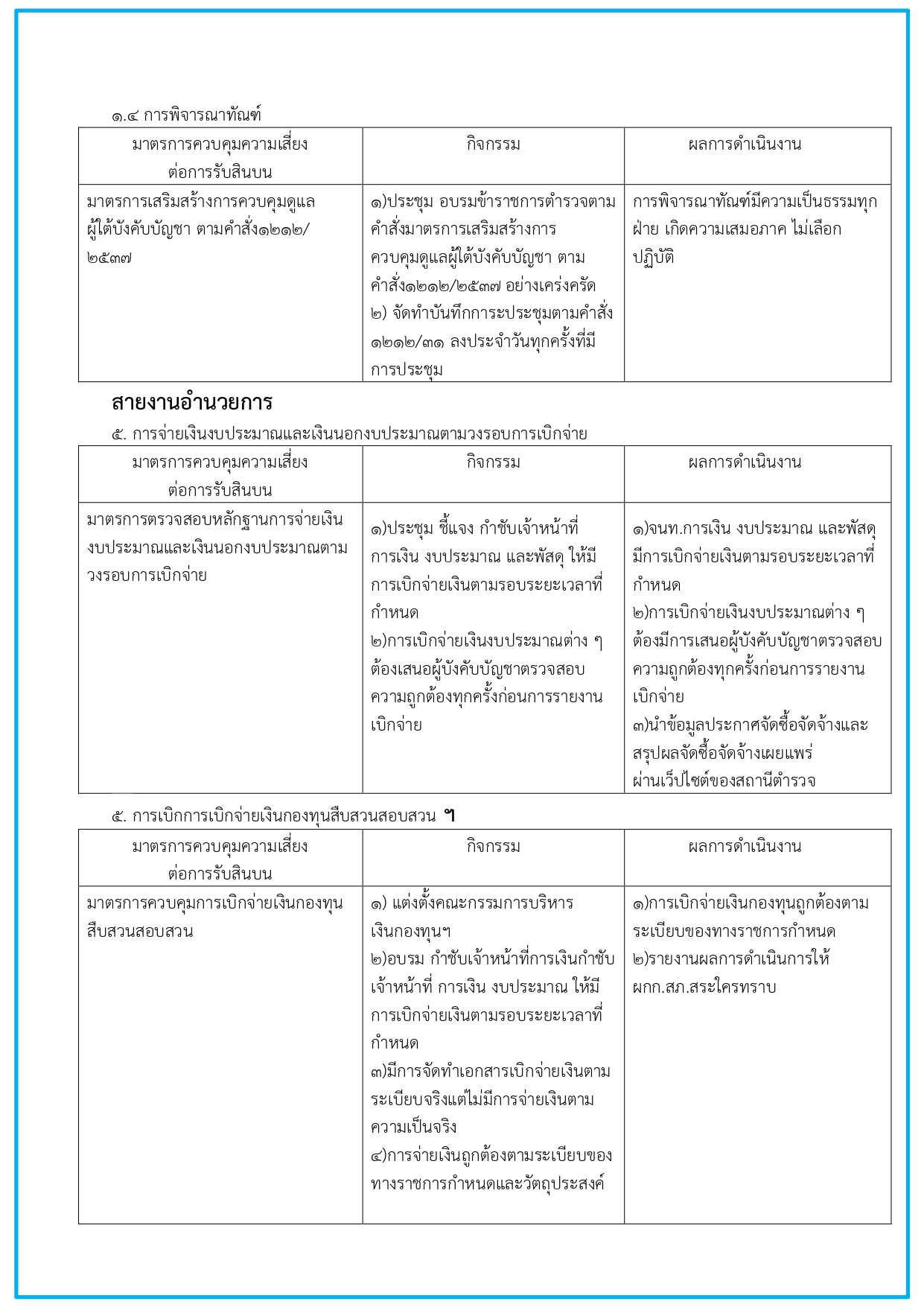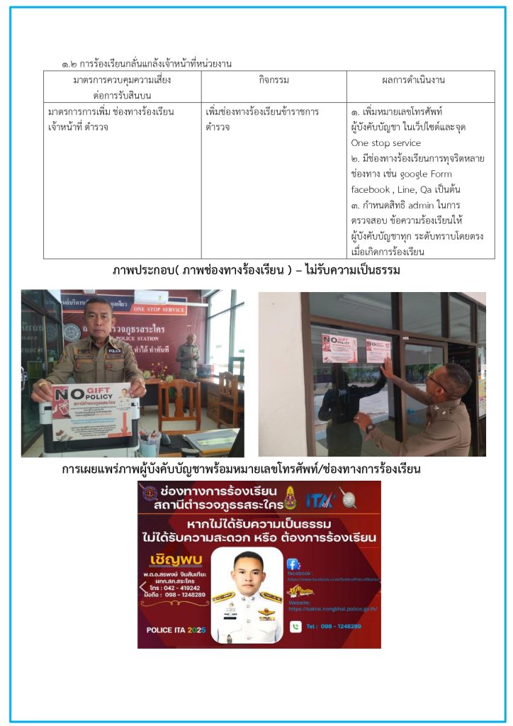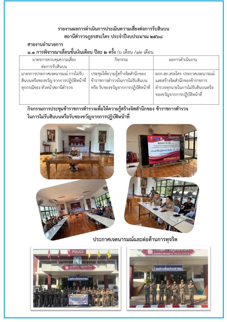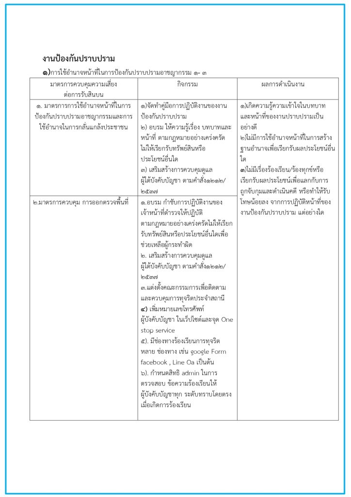 1.แต่งตั้งคณะกรรมการดำเนินการประเมินความเสี่ยงการรับสินบน ในการประเมินคุณธรรมและความโปร่งใส ในการดำเนินงานของหน่วยงานภาครัฐ(Integrity and Transparency Assessment : ITA)