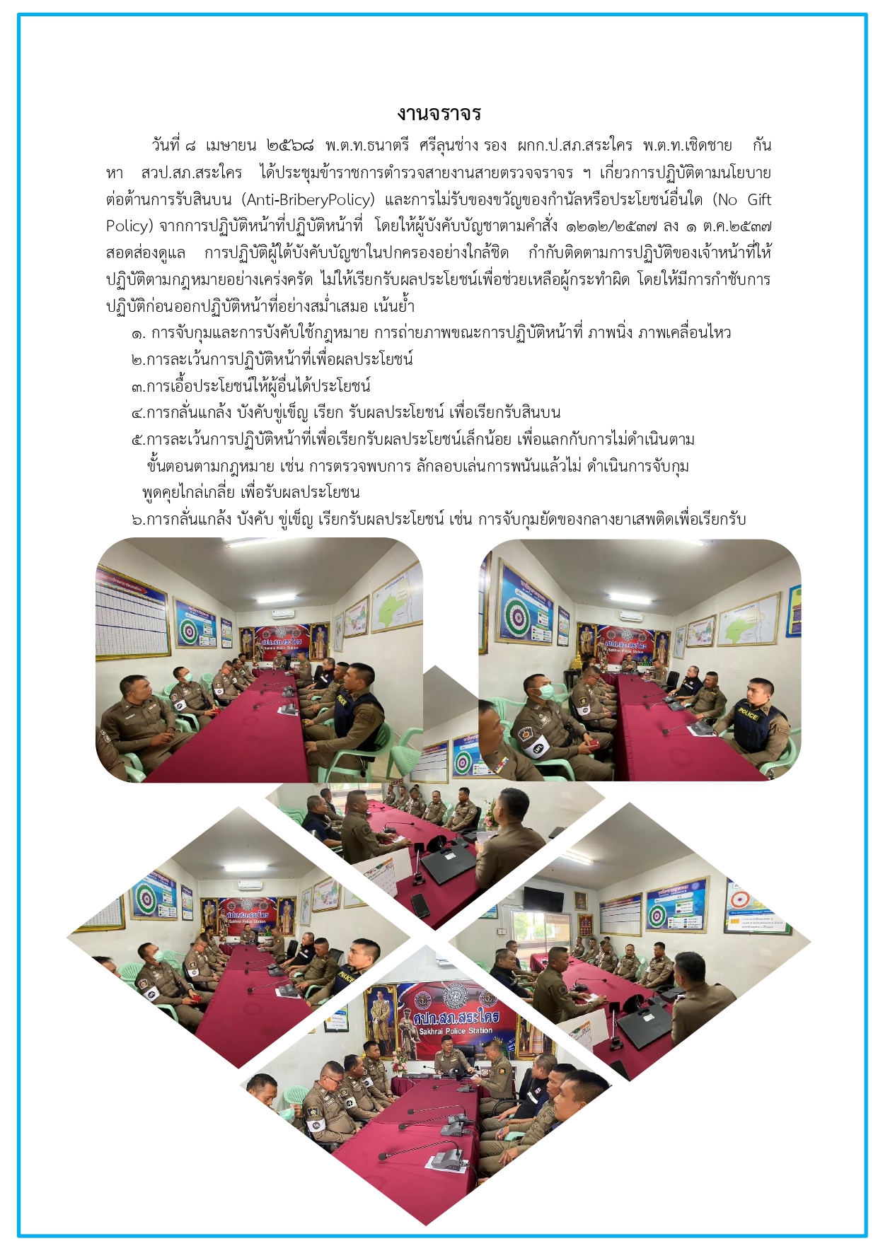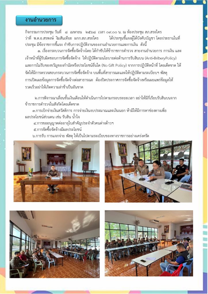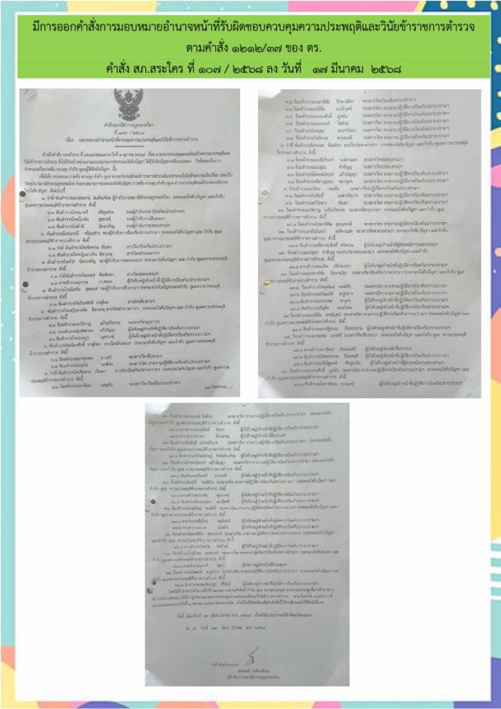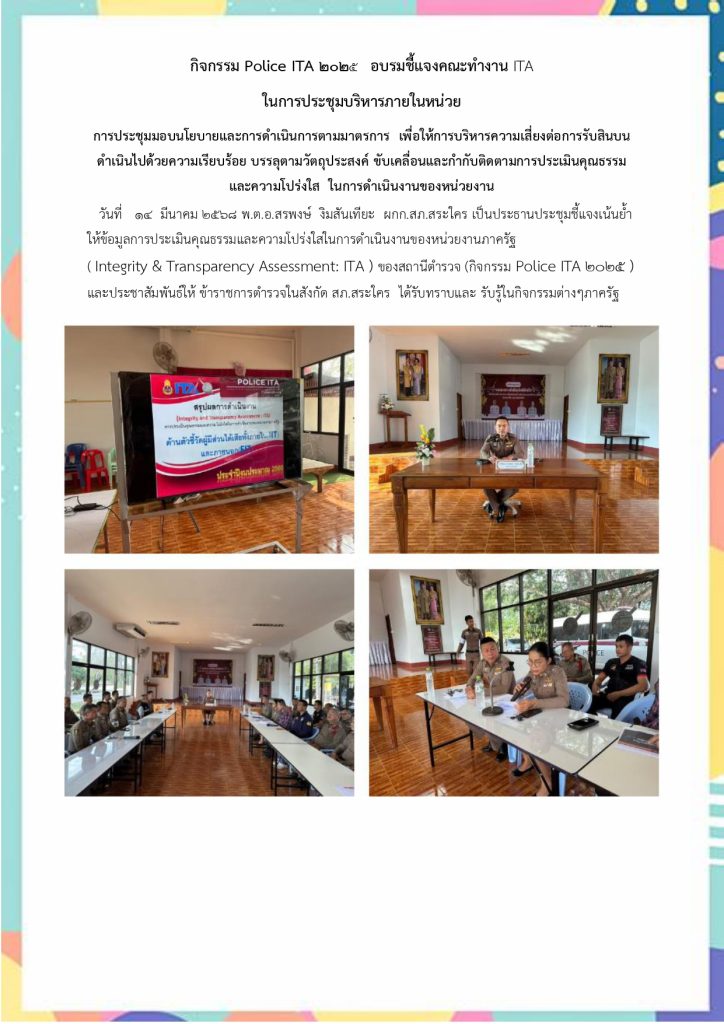 2.คำสั่งสถานีตำรวจภูธรสระใครที่ 173 /2568  เรื่อง    มอบหมายผู้รับผิดชอบการทำข้อมูลเพื่อประกอบการประเมินคุณธรรมและความโปร่งใสในการดำเนินงานของหน่วยงานภาครัฐ (ITA) ประจำปีงบประมาณ พ.ศ. 2568
