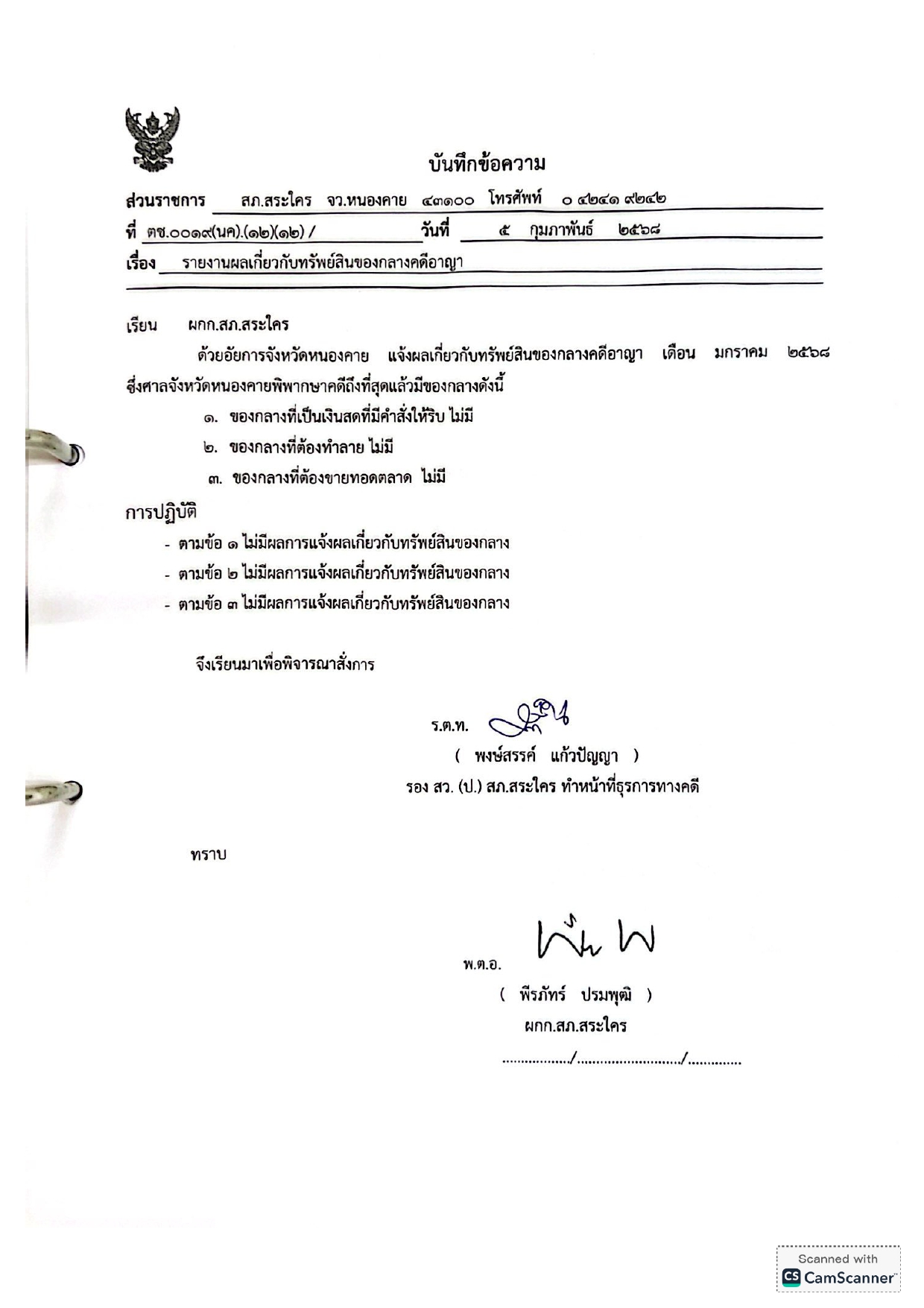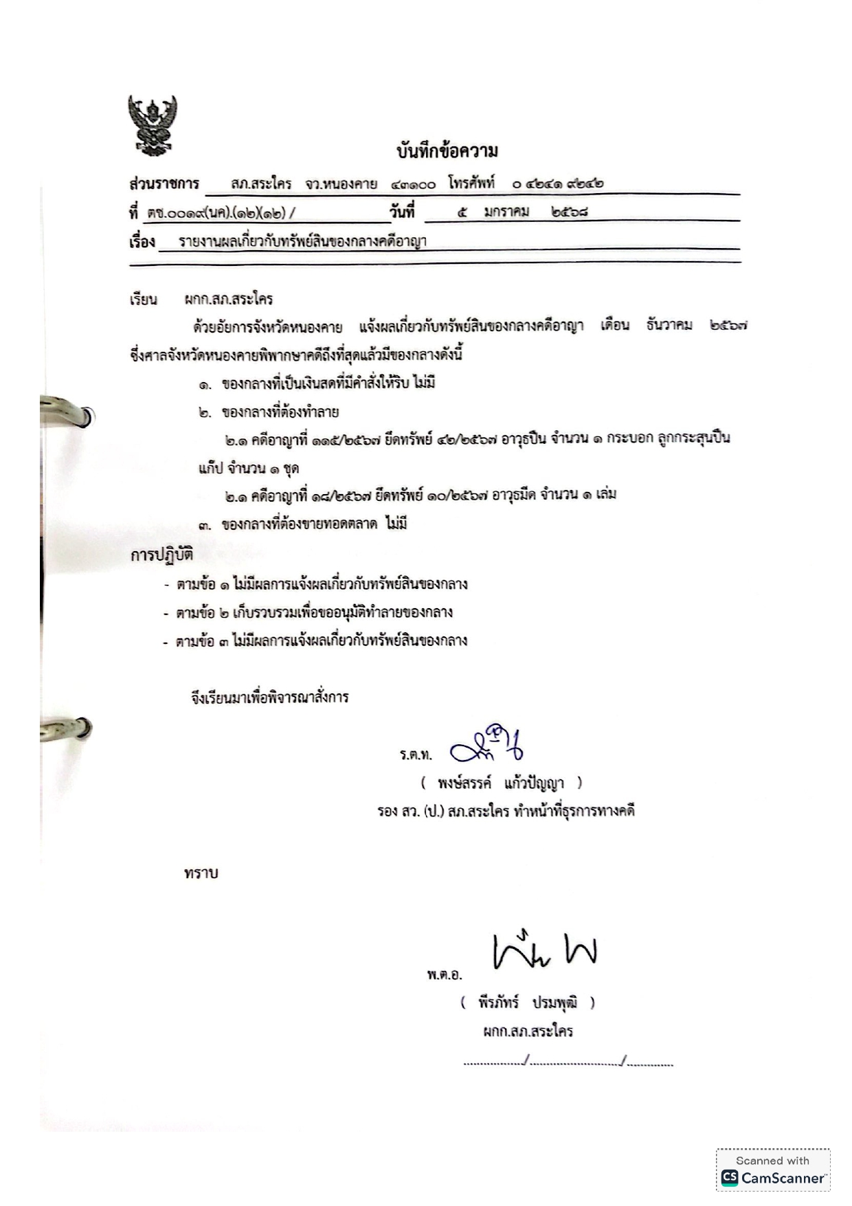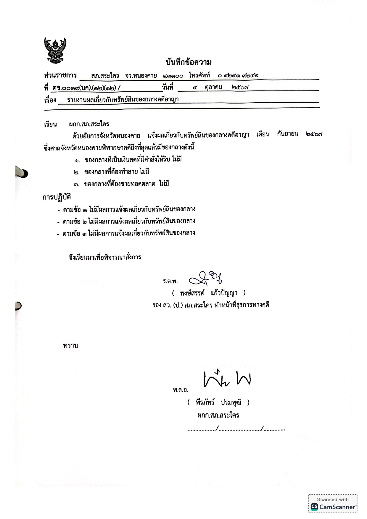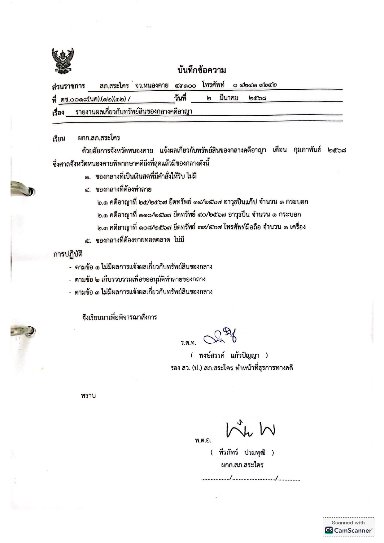 วันที่ 2 เมษายน  2568  เวลา  10.00 น.  พ.ต.อ.สรพงษ์  งินสันเทียะ  ผกก.สภ.สระใคร  พ.ต.ท.ธนาตรี  ศรีลุนช่าง รอง ผกก.ป.สภ.สระใคร  พ.ต.ท.คำดี  น้อยเจริญ   รอง ผกก.(สอบสวน)สภ.สระใคร ได้ตรวจสอบทรัพย์สินของทางราชการ เช่น     ยานพาหนะ  อาวุธปืน คงคง เป็นต้น  เพื่อให้เจ้าที่ผู้รับผิดชอบได้เข้าใจในการจัดการทรัพย์สินของราชการ ของบริจาค          เพื่อป้องกันมิให้เกิดการทุจริตภายในหน่วยงาน