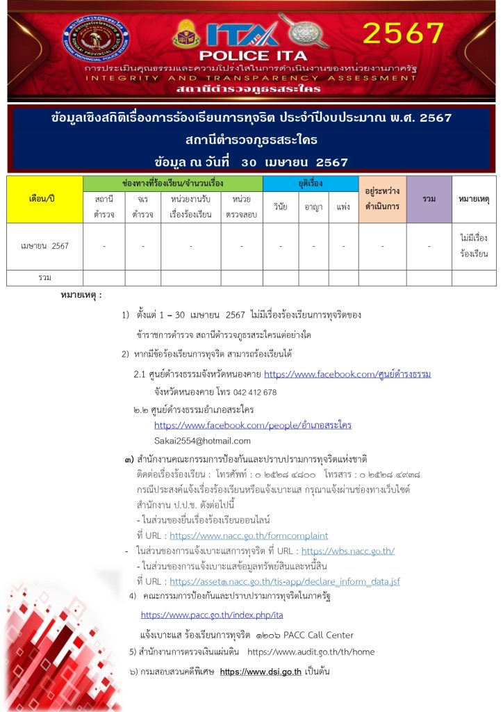 O17 ช่องทางร้องเรียนการทุจริตและข้อมูลเชิงสถิติเรื่องร้องเรียนการทุจริต2024